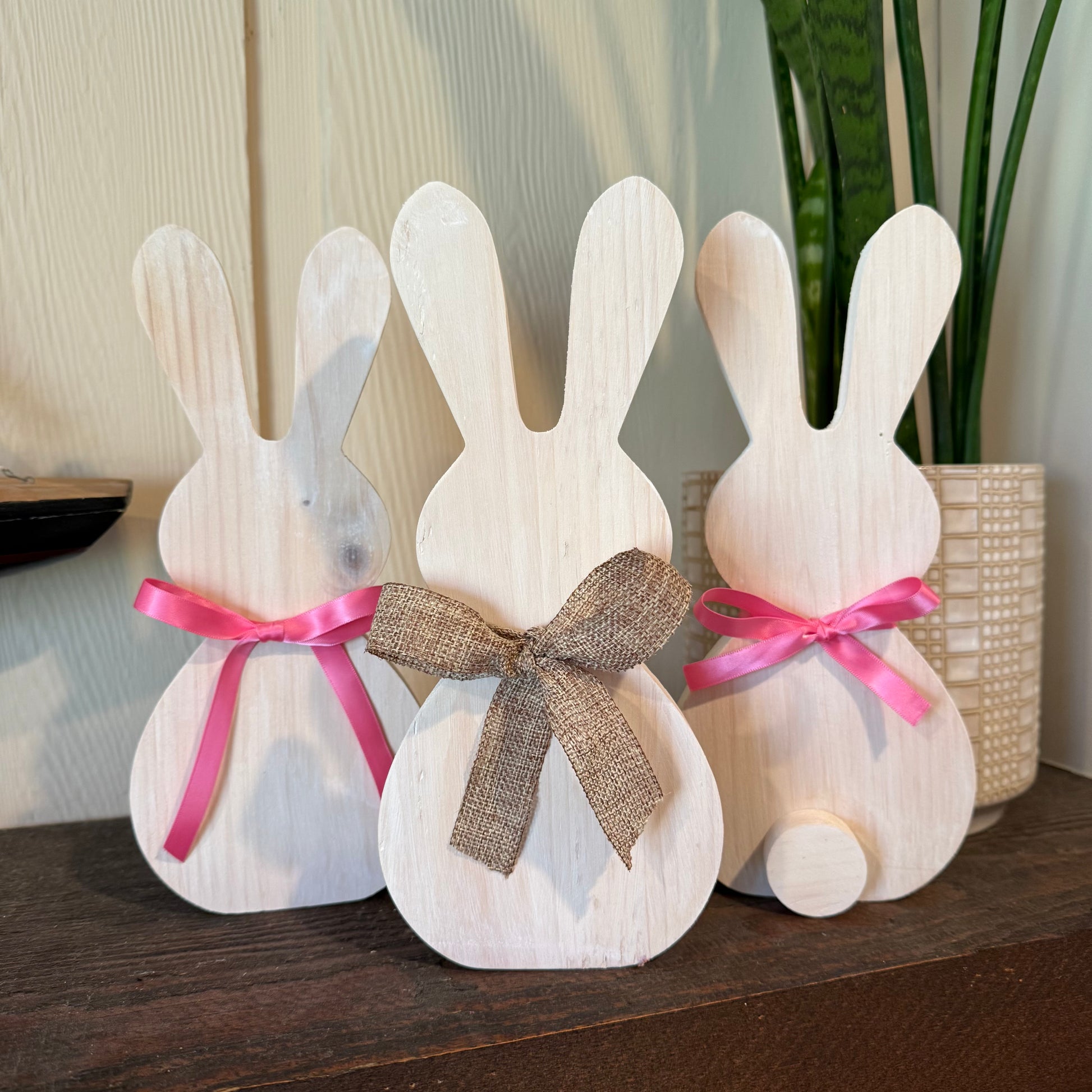 Because these are real wood products handcrafted from pine, every bunny is beautifully unique. Natural wood grain variation, minor knots, and slight color differences are normal and expected — they’re part of what makes each piece one of a kind.
